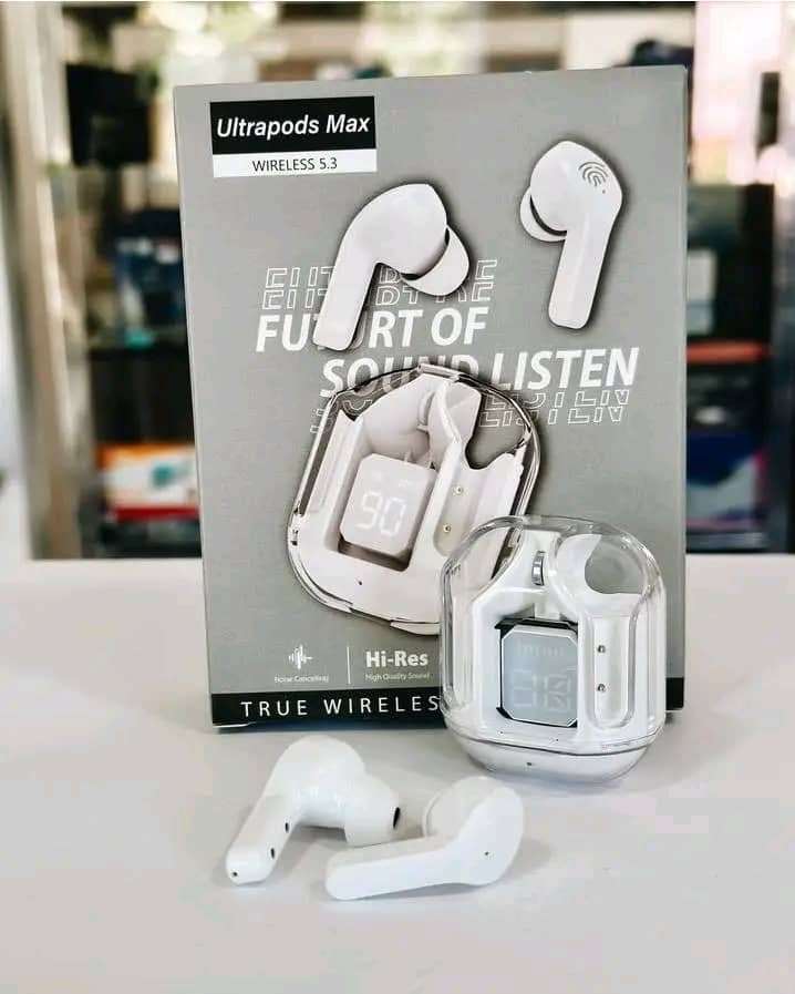 Ultrapods Max sont des écouteurs sans fil Bluetooth 5.3 abordables populaires pour leur design moderne souvent transparent avec affichage LED.
